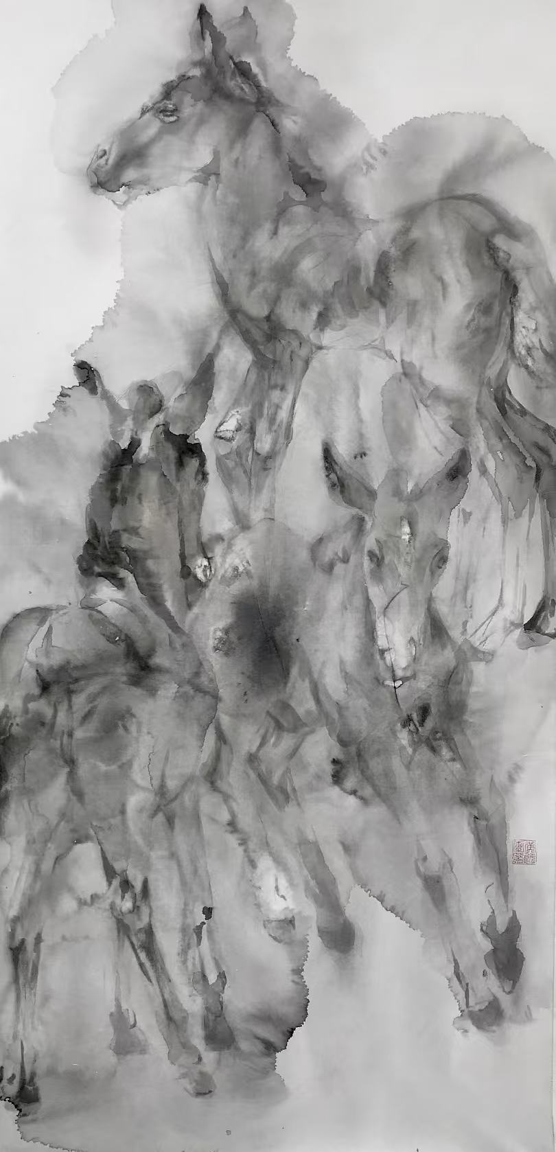 (《不羁的静默》——力量在静默中流淌,马的精神透过水与光显现)