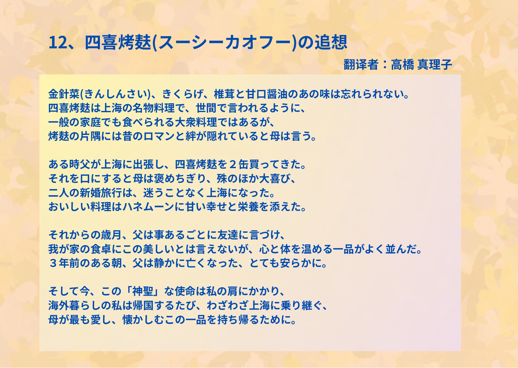 第八部十四行诗《有一种味道》之十二