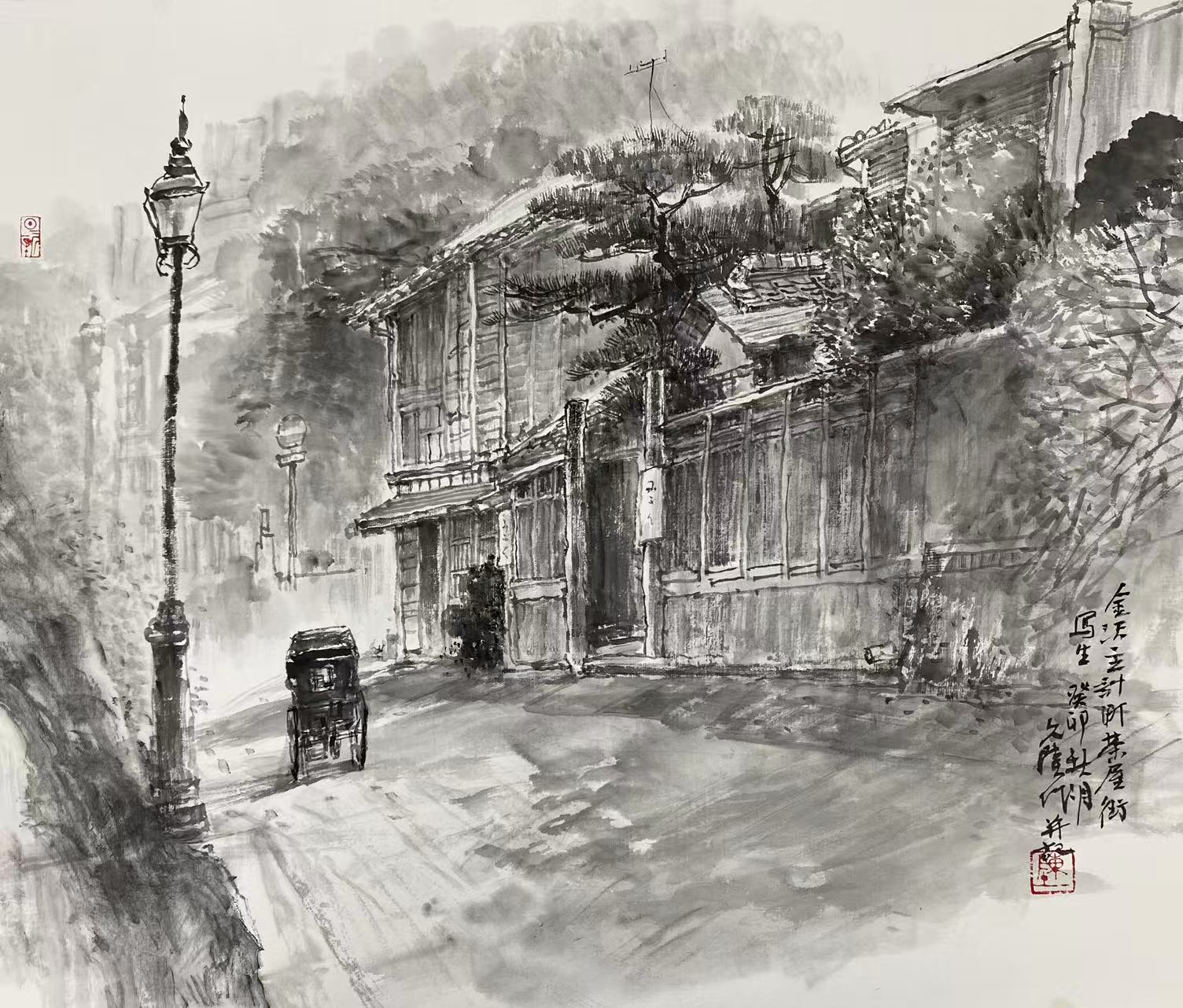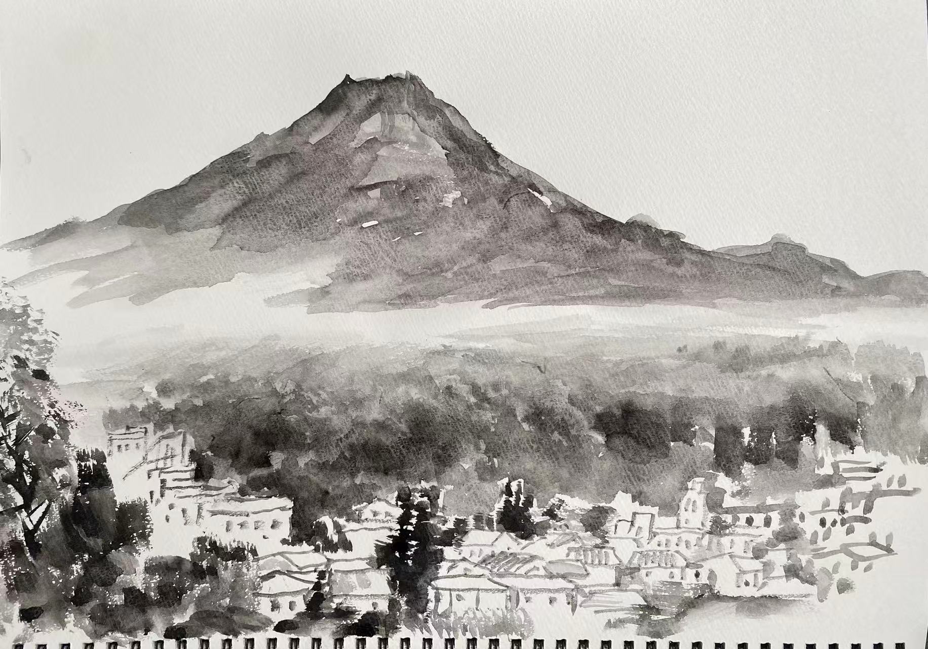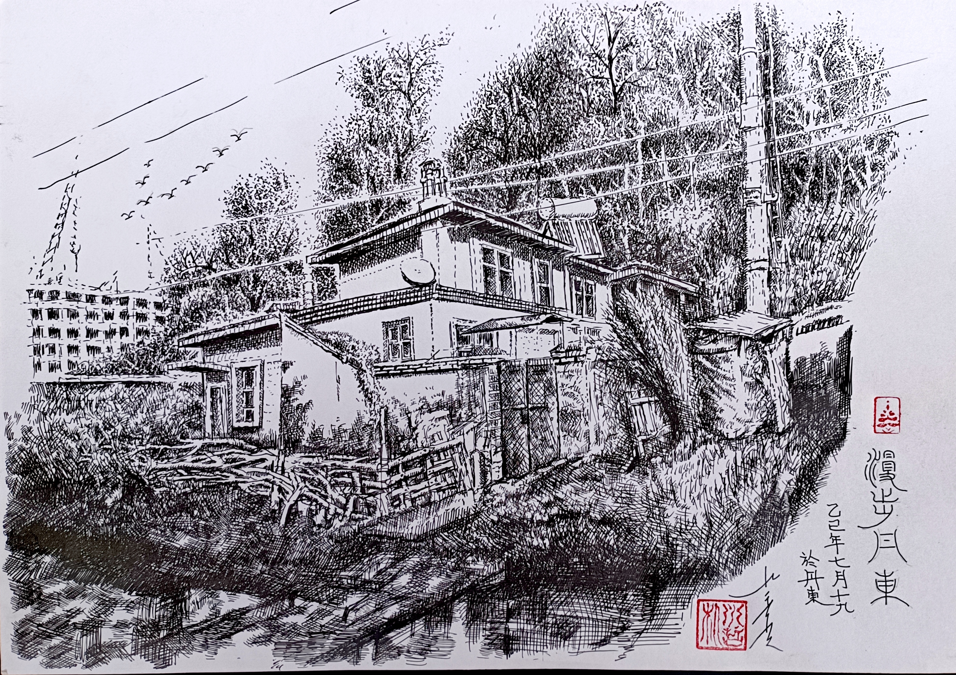 朴永哲钢笔画《漫步丹东》
