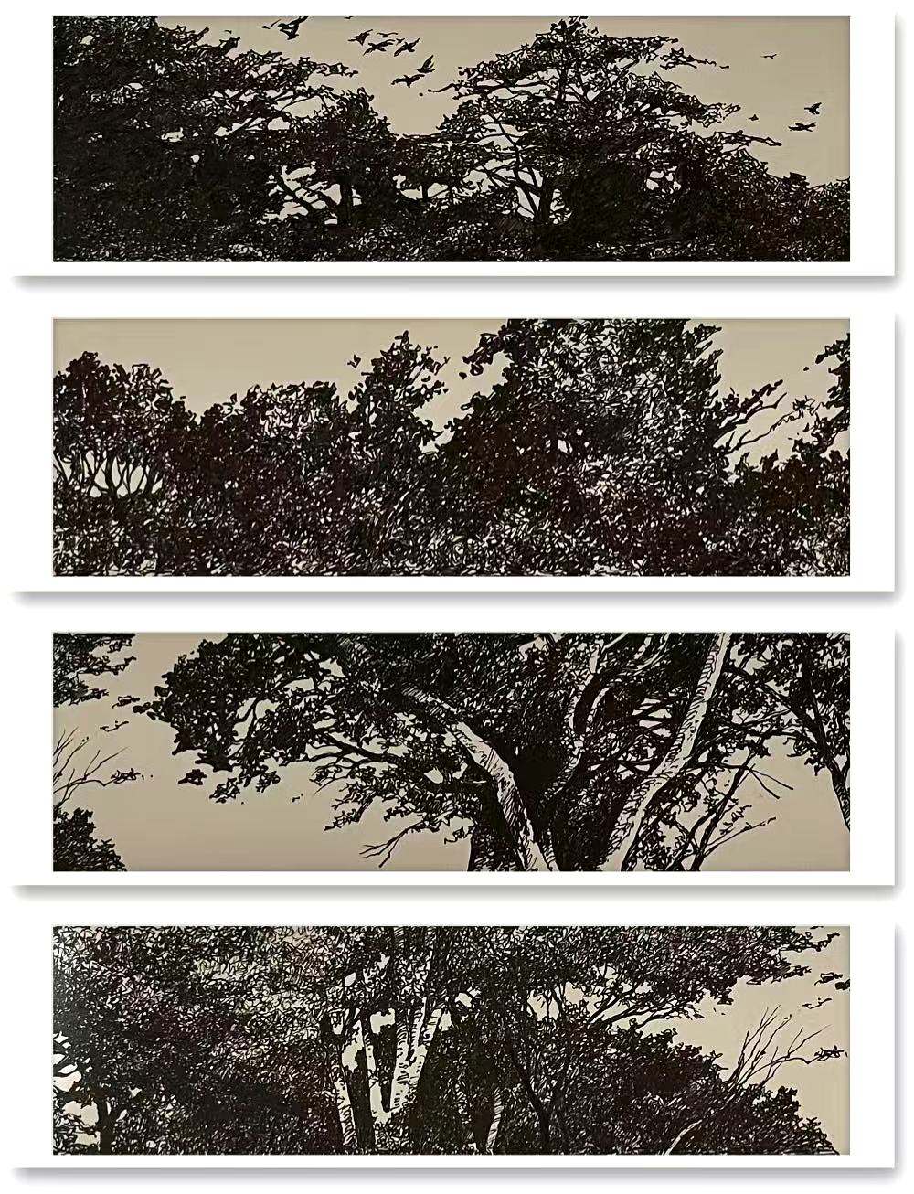 陆建新 中性笔迷你五米小长卷《林间漫步》