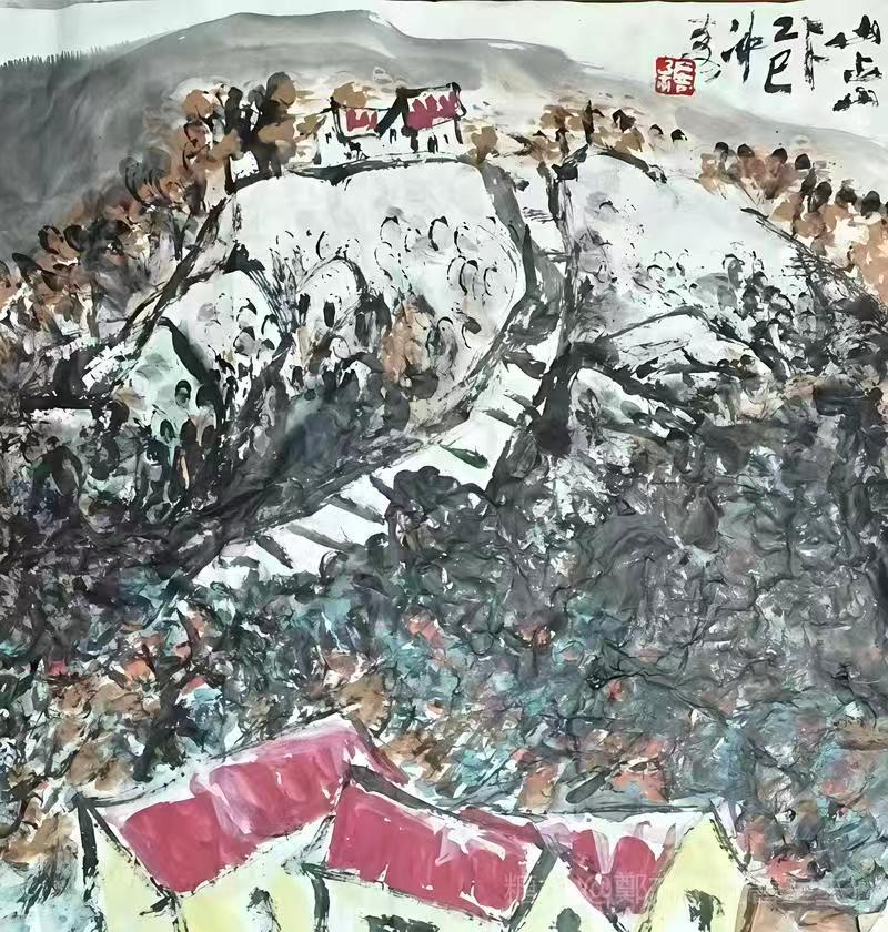 叠嶂层峦色正浓,丹霞万片落群峰。